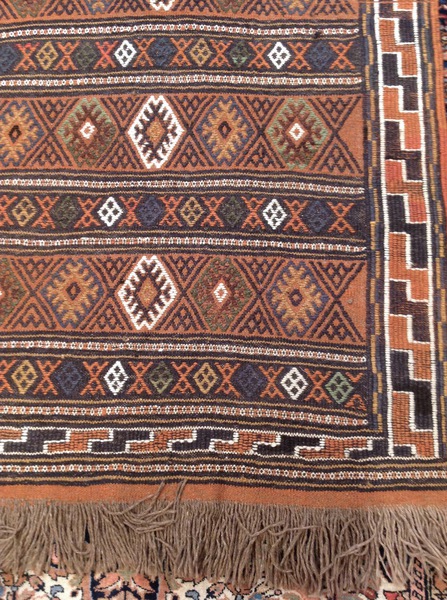 This storage bag comes from southern Iran and has a pile woven front panel and a flat woven back.